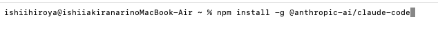 npm install -g @anthropic-ai/claude-codeと入力してEnterキーを押す