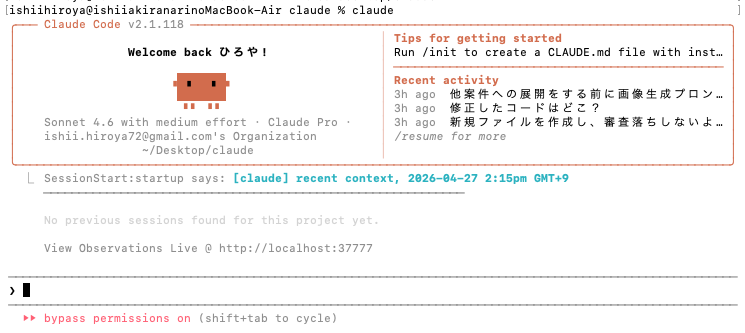 Claude Codeが起動したら、ターミナル上で日本語を使って自然言語で指示するだけでOKです。難しい構文や専門知識は不要です。