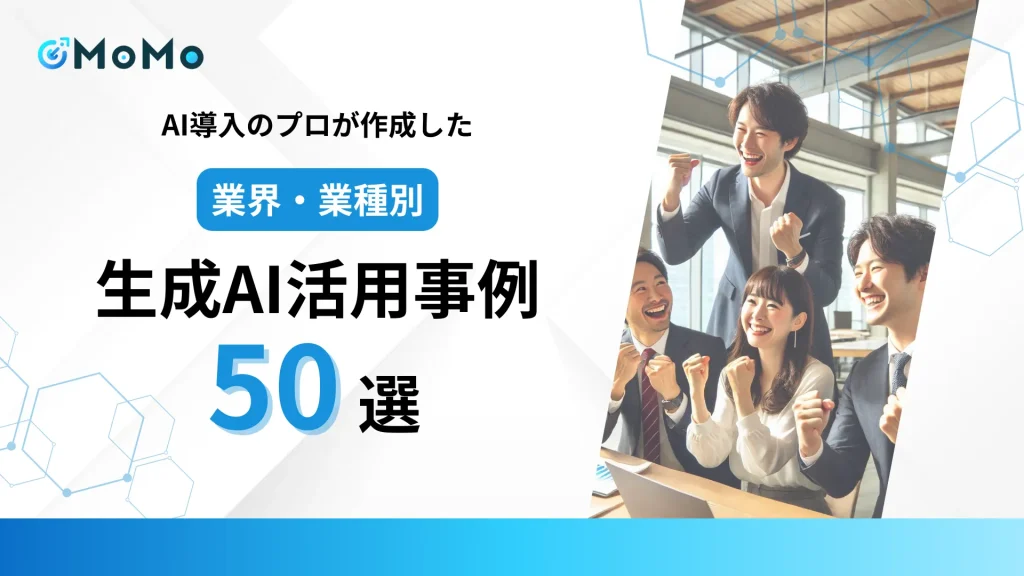 そんな声にお応えして、MoMoがこれまでの支援で培ったノウハウを凝縮した「生成AI活用事例集」を公開しました。 あなたのビジネスに直結するヒントを、各業界・職種の視点から詳しく解説しています。
